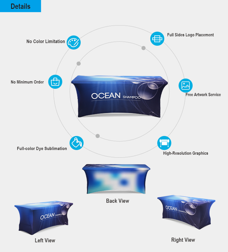 By using banquet covers on your display, this-these custom table skirt can hide older and worn surfaces while still keeping the price incredibly affordable.