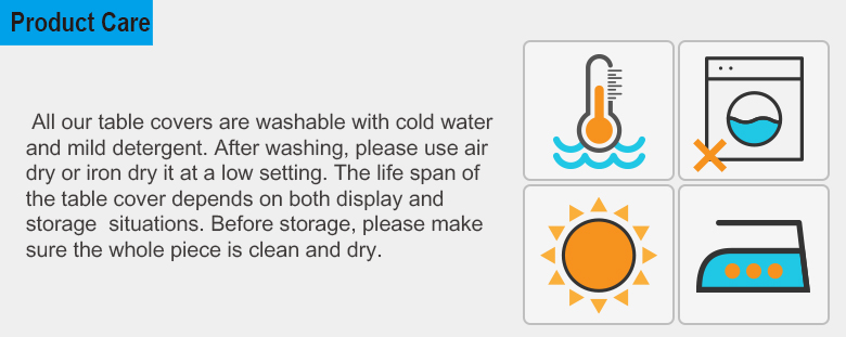 This cover, table skirt is manufactured of a premium polyester twill fabric that is machine washable.