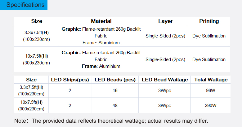 1piece 3.3' or 10 'Wide x 7.5' Tall Lightbox Backdrop Aluminium Frame With the LED Light