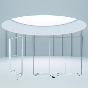 Use the display as a room divider to create individual spaces, or as a backwall that can be turned around to show off a different graphic on demand.